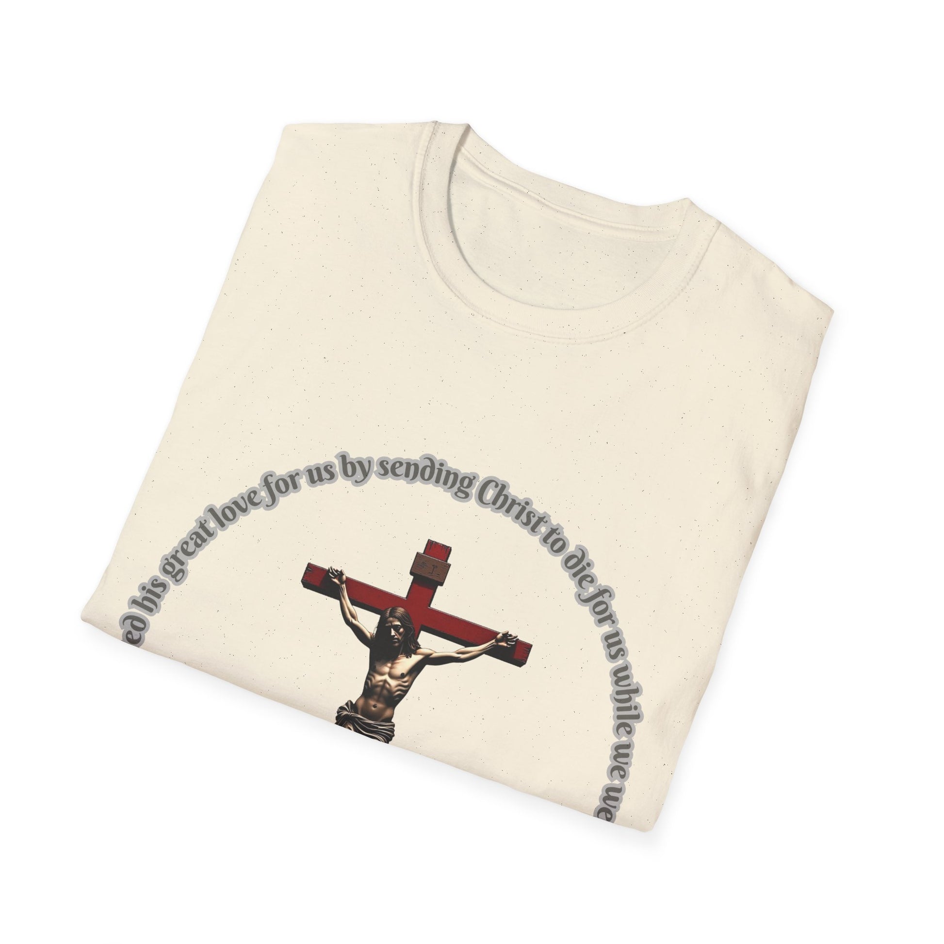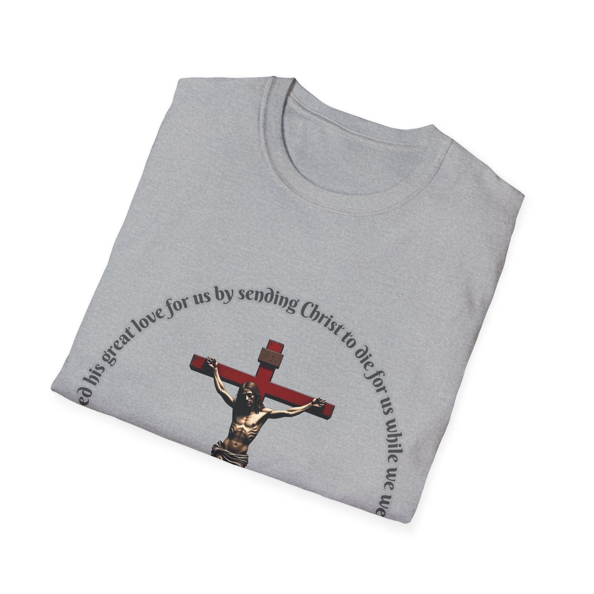 God Showed His Love Christian Unisex T-Shirt with Romans 5:8 Verse